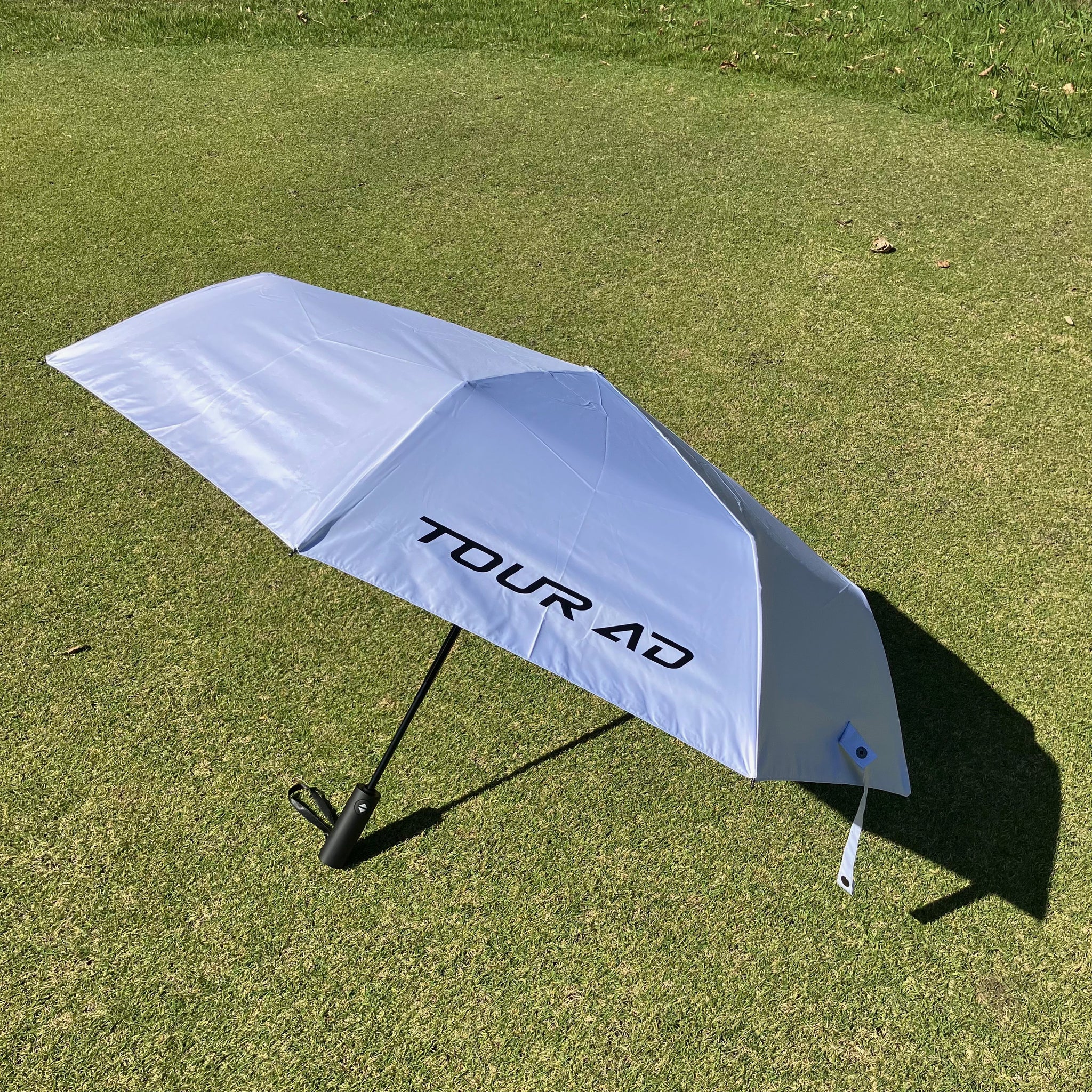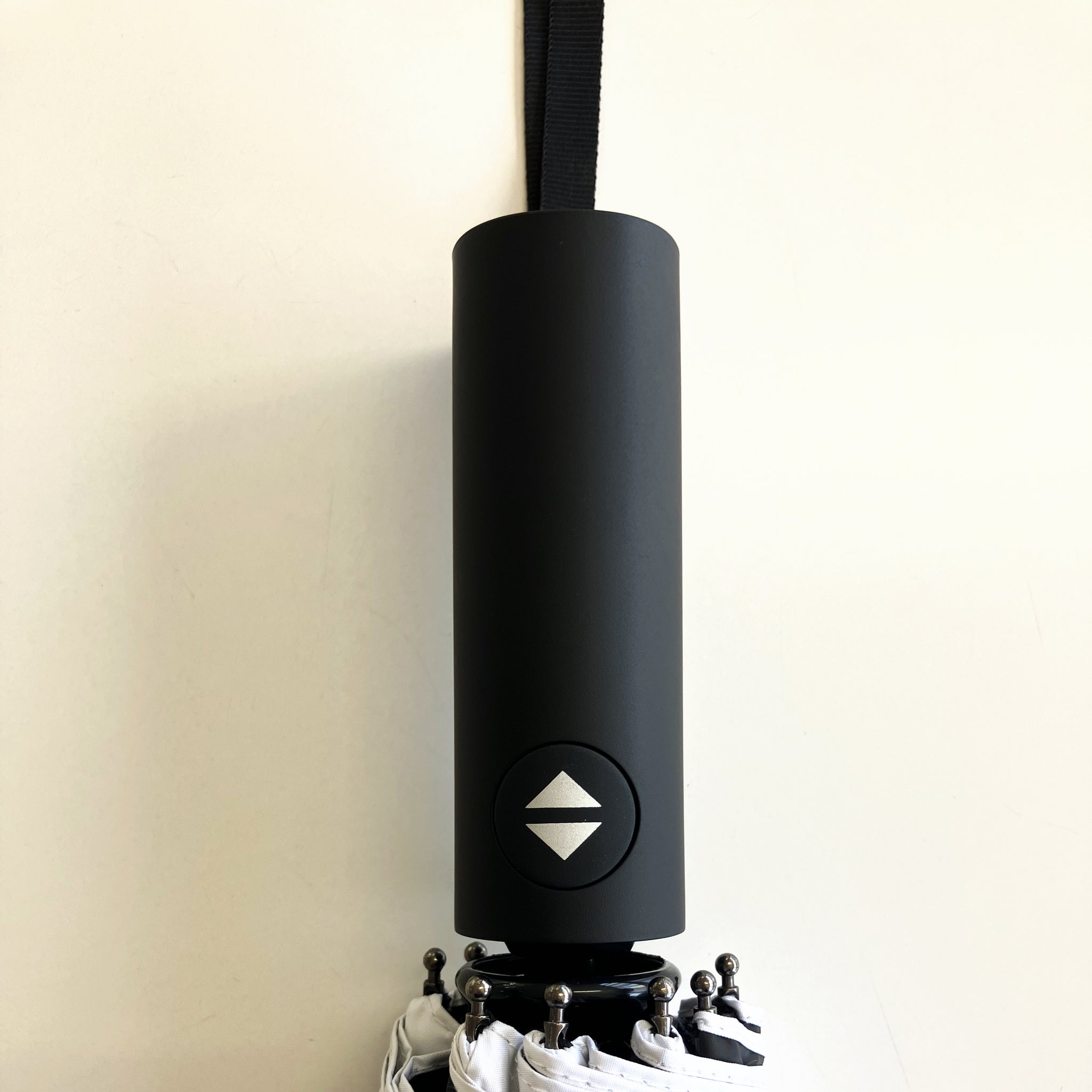自動開閉機能付きの3段折り畳み傘。コンパクトで持ち運びに便利。飛び出しを防ぐ安全装置付き。晴雨に対応し、直径112cmでしっかりと庇います。遮光率100%と紫外線遮蔽率99.9%で安心してご使用いただけます。ゴルフだけではなく普段使いにもおすすめです。